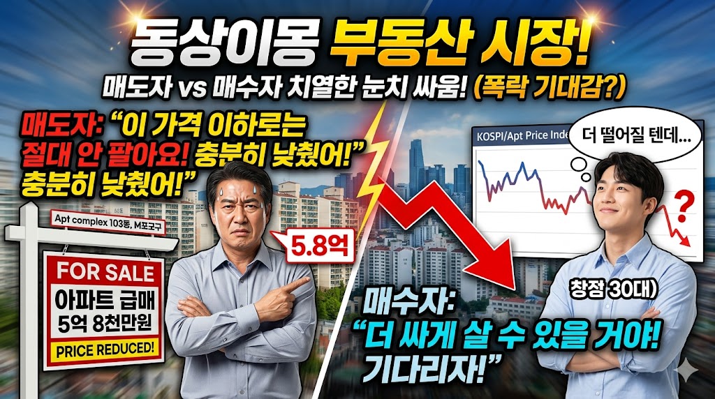 매도자는 "이미 내릴 만큼 내렸다"고 주장하고, 매수자는 "1억은 더 빠져야 산다"며 맞서고 있는데요.